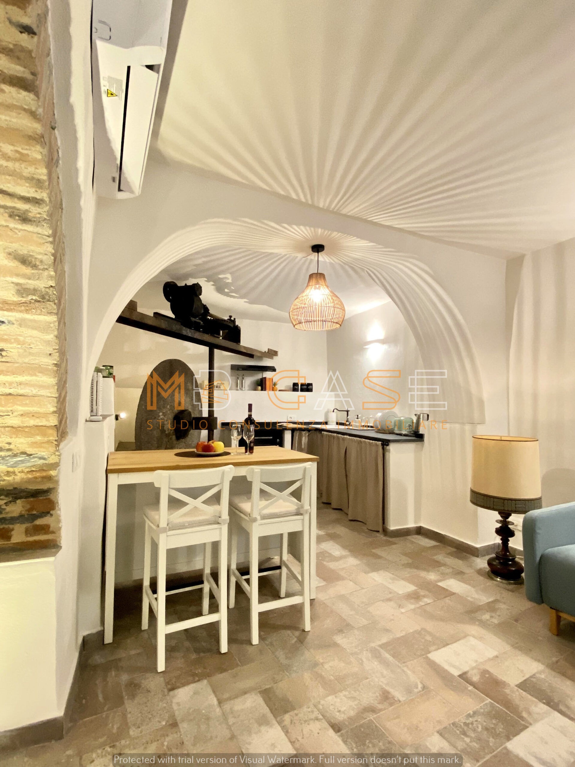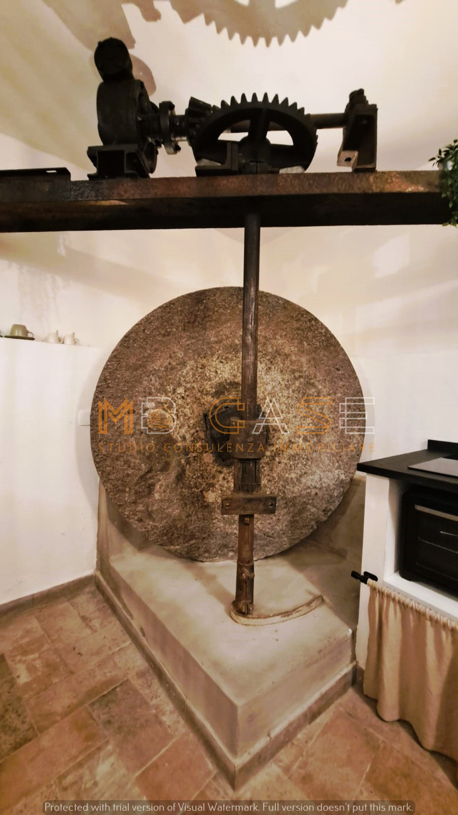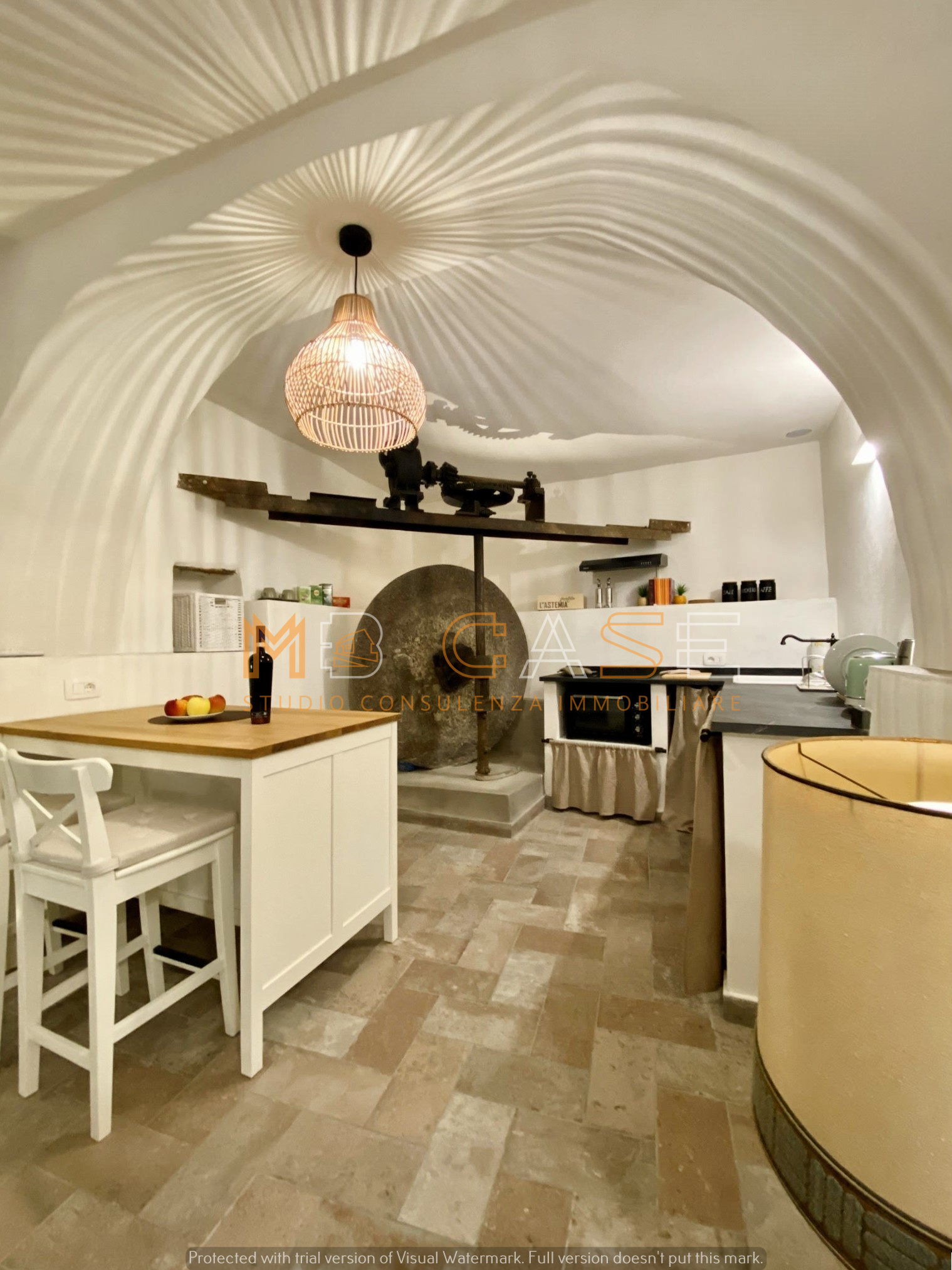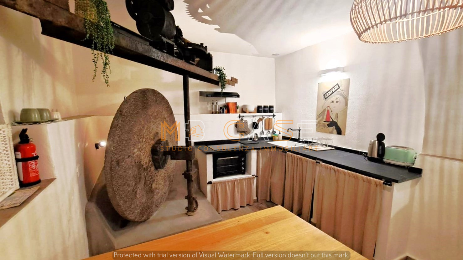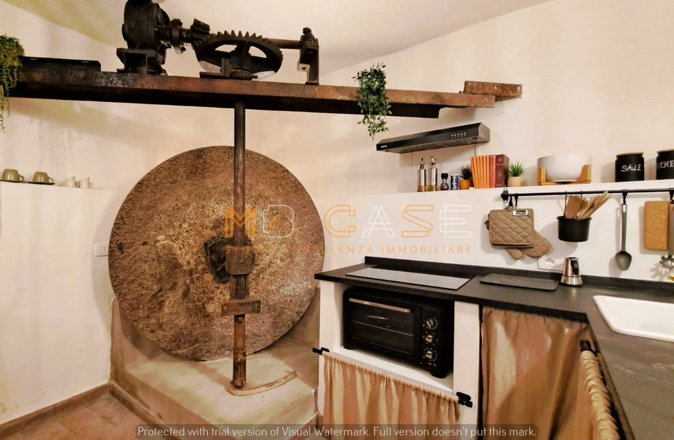 La proprietà è il risultato di un restauro accurato che ha saputo esaltare gli elementi originari – travi in legno, pietra a vista e una suggestiva macina antica – creando ambienti dal fascino autentico e allo stesso tempo funzionali.