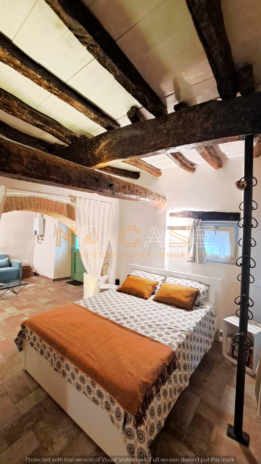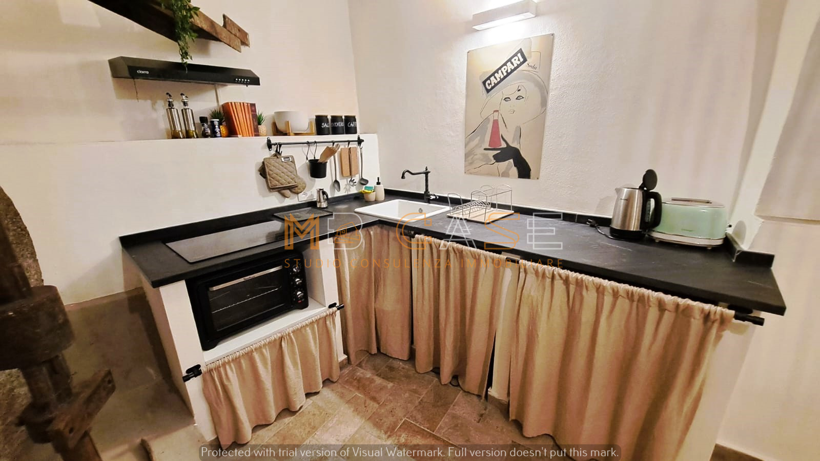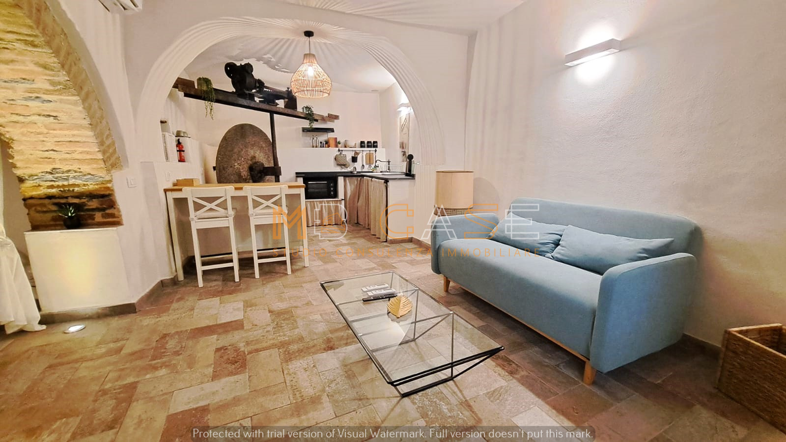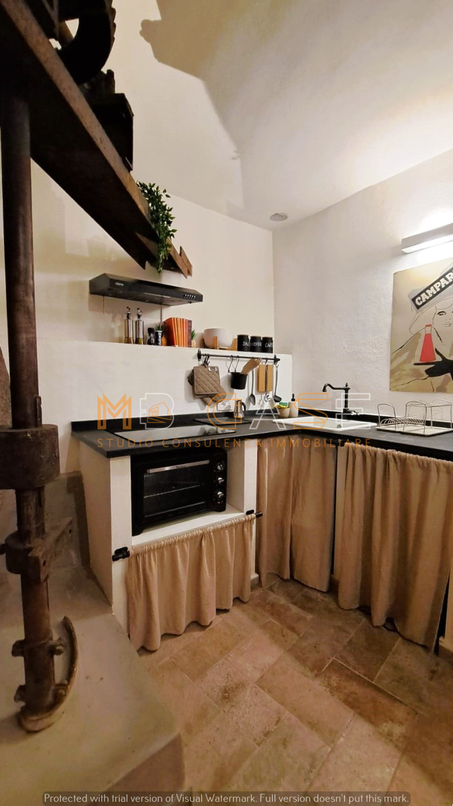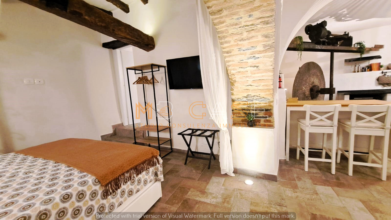 La proprietà è il risultato di un restauro accurato che ha saputo esaltare gli elementi originari – travi in legno, pietra a vista e una suggestiva macina antica – creando ambienti dal fascino autentico e allo stesso tempo funzionali.